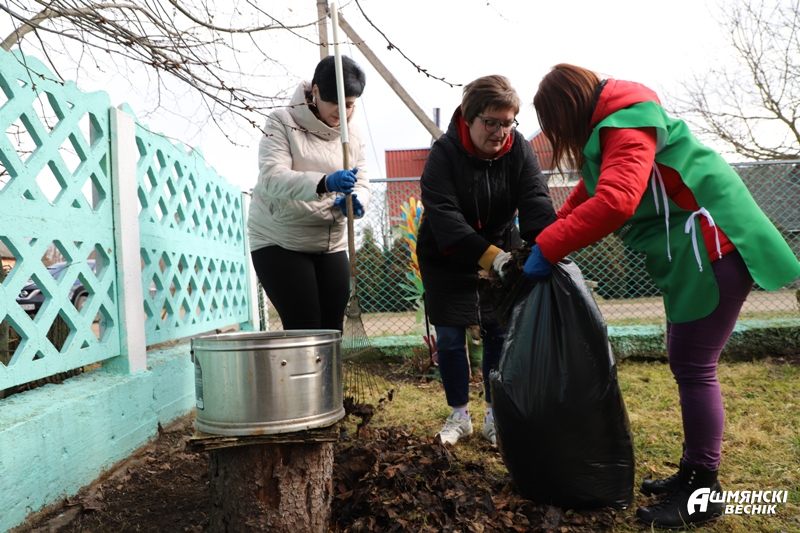 19 марта активисты отделения дневного пребывания для граждан пожилого возраста в рамках акции «Забота» организовали уборку придомовой территории бывшего малолетнего узника Василия Кирилловича Жевняка. К доброму делу присоединились и специалисты, и волонтеры отделения. Также пришли на помощь активисты ОО «БРСМ» и представители трудового коллектива Ошмянского РУП ЖКХ. Василий Кириллович вместе с супругой встречал гостей, которые за короткий промежуток времени очистили придомовую территорию от мусора и листьев.