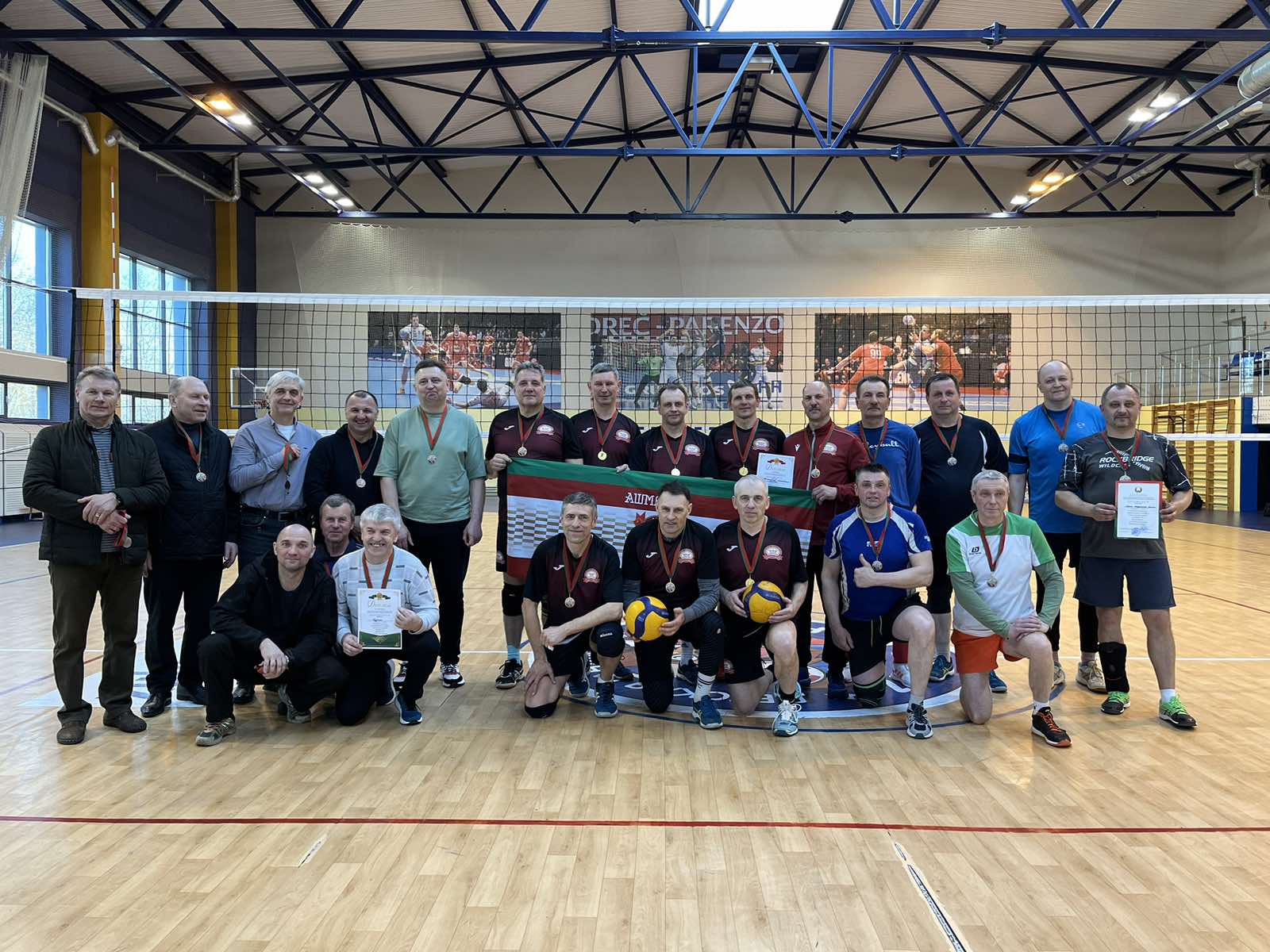 После окончания матча в рамках турнира по волейболу среди ветеранов на площадку вышли игроки старшего поколения. Игра была не менее интересной и захватывающей. В итоге места распределились следующим образом: 1 место завоевали игроки Ошмянского мясокомбината, второе – у игроков из Минской области, а замкнули тройку лидеров игроки из Щучина.
