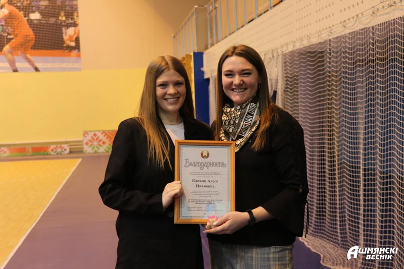 Благодарственным письмом председателя Ошмянского районного исполнительного комитета были награждены Надежда Шукелойть и Петр Давидович. Благодарности сектора спорта и туризма Ошмянского райисполкома получили Алеся Капыш, Иван Шепет, Регина Жабко, Наталья Кузьмицкая.