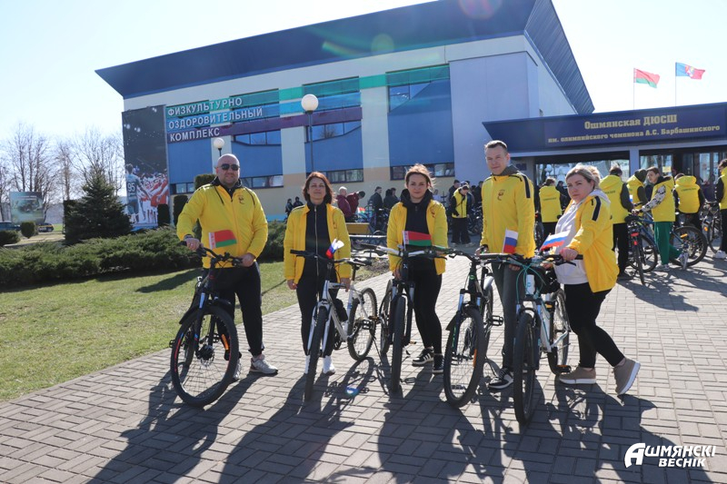 2 апреля в Ошмянах прошел велопробег, посвященный Дню единения народов Беларуси и России. На территории возле физкультурно-оздоровительного комплекса собрались учащиеся старших классов городских учреждений образования вместе с учителями физической культуры и руководителями патриотического воспитания, а также представители аграрно-экономического колледжа. Приняли участие в велопробеге и организации и предприятия нашего района. Активисты Ошмянского мясокомбината, сыродельного завода, центральной районной больницы показали достойный пример молодому поколению. Велосипеды участников украшали флаги двух государств. Так ошмянцы демонстрировали уважение и к своей стране, и к стране-соседке.