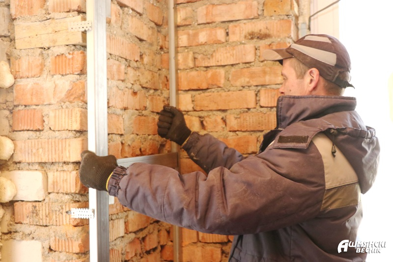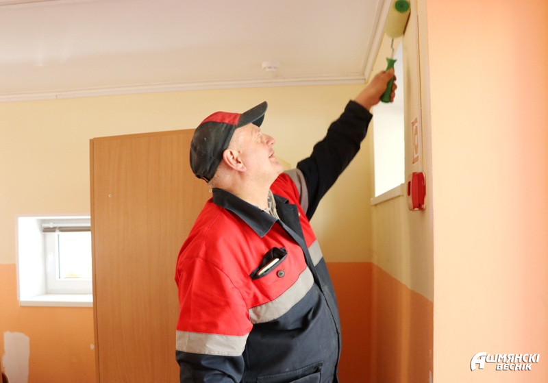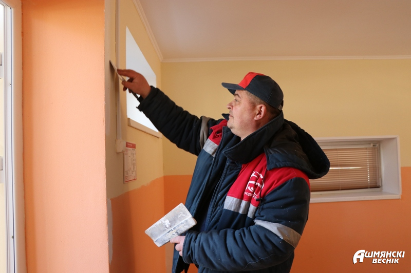 Не откладывая в долгий ящик, многие организации приступили к работе. Коллектив Ошмянского РУП ЖКХ с доведенным заданием уже справился: здание медицинского блока сверкает новой кровлей. Кипит работа в домике, который взяли под свою «опеку» энергетики. Работники ремонтно-строительного участка Ошмянских электрических сетей Александр Дервис, Юрий Павилович, Анатолий Горлукович и Сергей Дробот штукатурят стены внутри, тщательно заделывают образовавшиеся трещинки на фасаде домика.