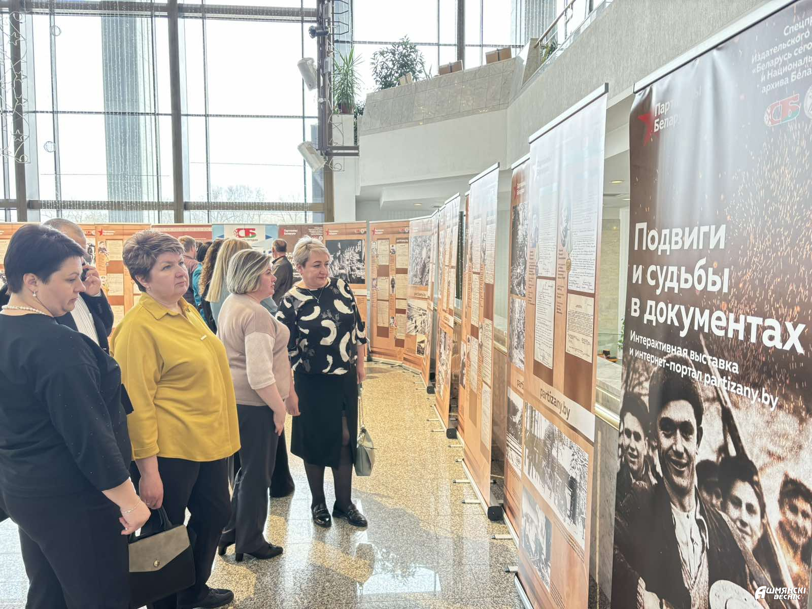 Впечатлили присутствующих выставки «Подвиги и судьбы партизан в документах», «Геноцид: документы и очевидцы свидетельствуют». Каждая из них отражает картины военного времени – страшного и беспощадного. Среди представленных документов — различные издания последних лет, включающие в себя серию новых исследований белорусских ученых и журналистов о малоизвестных страницах геноцида и военных преступлениях против мирного населения. Часть изданий основана на материалах уголовного дела о геноциде белорусского народа, возбужденного в апреле 2021 года Генеральной прокуратурой Беларуси.