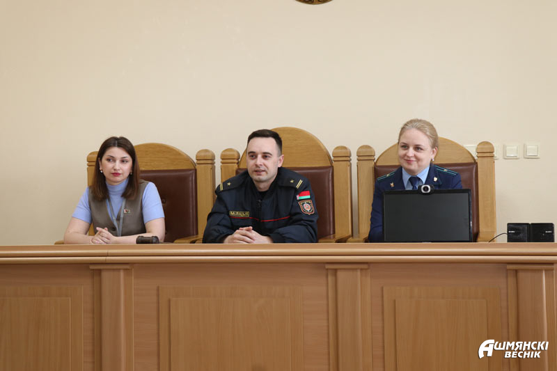 В мероприятии приняли участие старший помощник прокурора Екатерина Илюкович и начальник ИДН Ошмянского РОВД Вадим Клим. Екатерина Зигмондовна акцентировала внимание ребят на причинах совершения подростками преступлений. Специалист привела примеры из собственной практики, отметив, что не каждый подросток осознает, что совершаемые им противоправные деяния могут привести к тяжелым и трудно исправимым последствиям. Начальник ИДН Ошмянского РОВД Вадим Клим напомнил ребятам о том, что часто из любопытства, из-за незнания, за компанию подростки совершают поступки, нарушающие закон, или сами становятся жертвами.