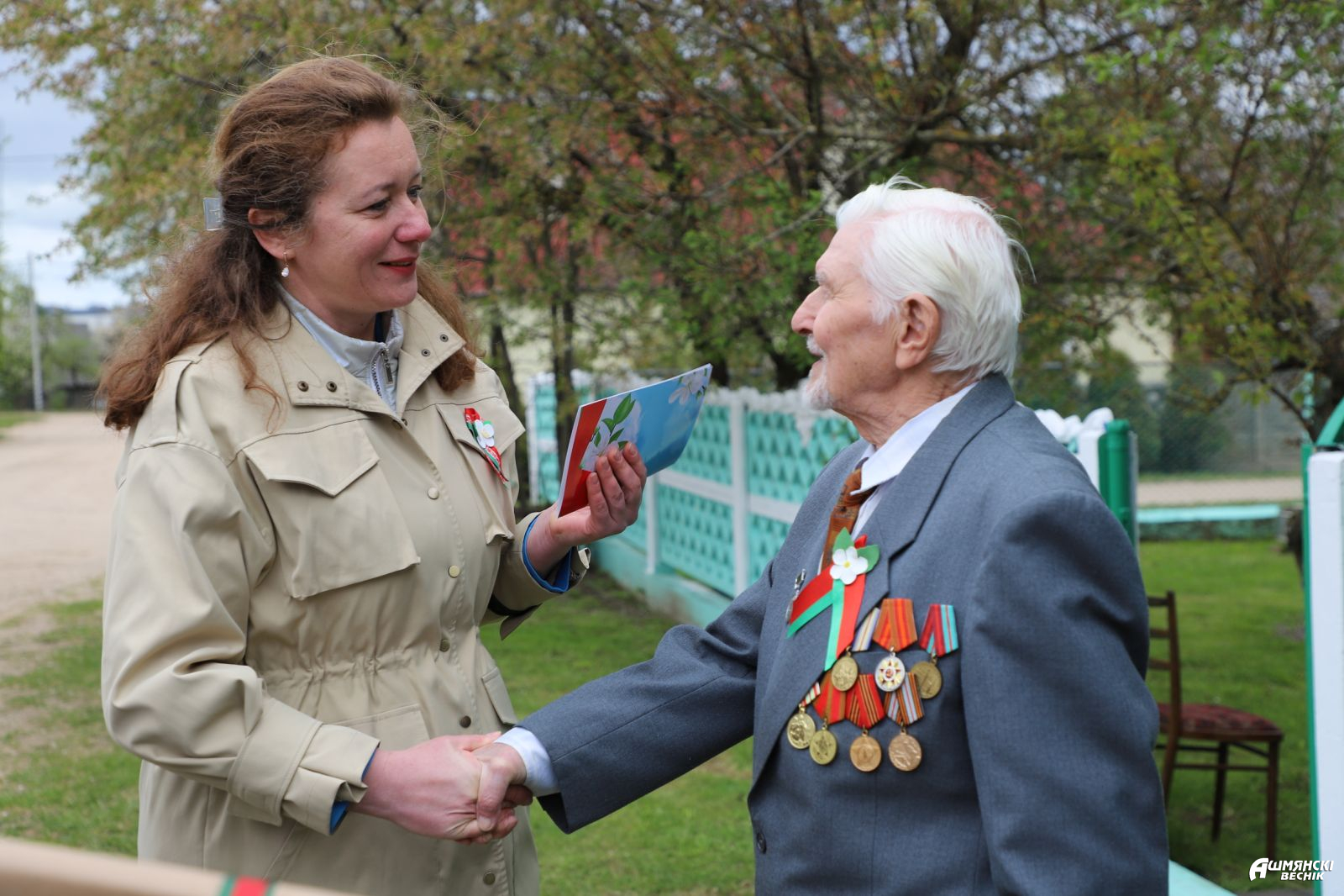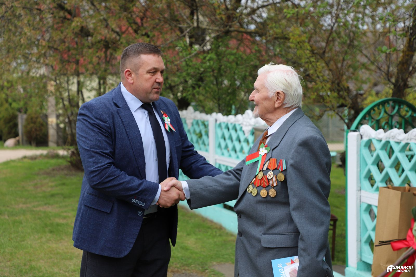 К областной акции «Поздравим ветеранов вместе» присоединились и на Ошмянщине. Председатель Ошмянского райисполкома Владислав Гершгорин поздравил узников фашистских лагерей Василия Кирилловича Жевняка и Марию Егоровну Селедцову, поблагодарил их за вклад в патриотическое воспитание молодежи, вручил цветы и подарки.
