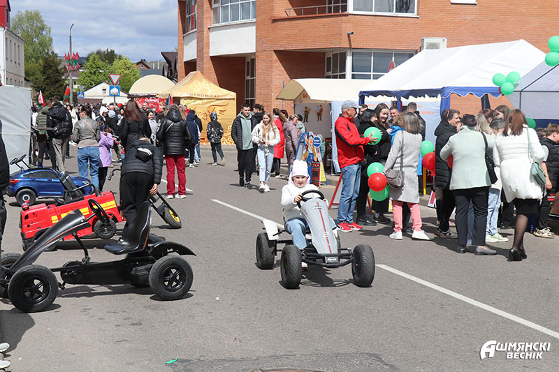 Празднично и многолюдно на улицах Ошмян. С самого утра на улице Советской работают интерактивные, игровые и спортивно-развлекательные площадки, выставки декоративно-прикладного творчества, фотозоны.