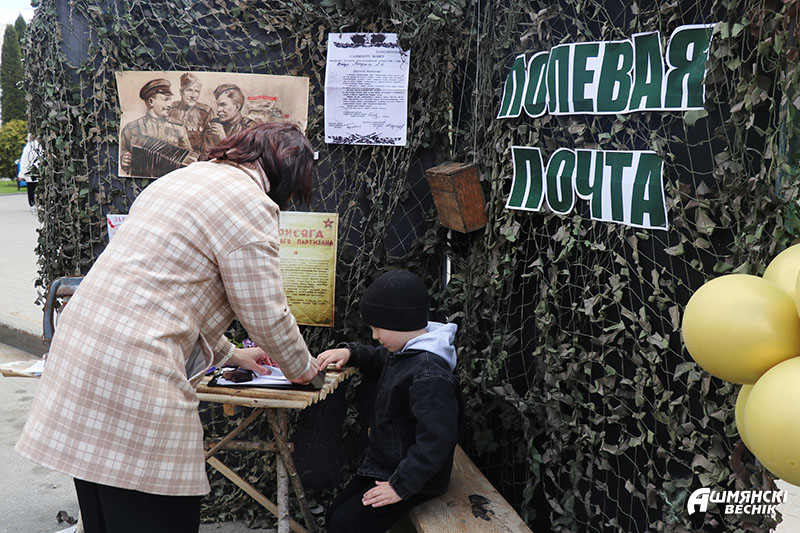 У здания Белпочты и Белагропромбанка разместились интерактивные локации, подготовленные предприятиями и организациями города. Широко представлена праздничная и сувенирная продукция, которую предлагают сотрудники центра творчества детей и молодежи, территориального центра социального обслуживания населения и отдела ремесел и традиционной культуры. Здесь же представлена выставка из фондов краеведческого музея «Вечной памятью живые» и многочисленные фотозоны.