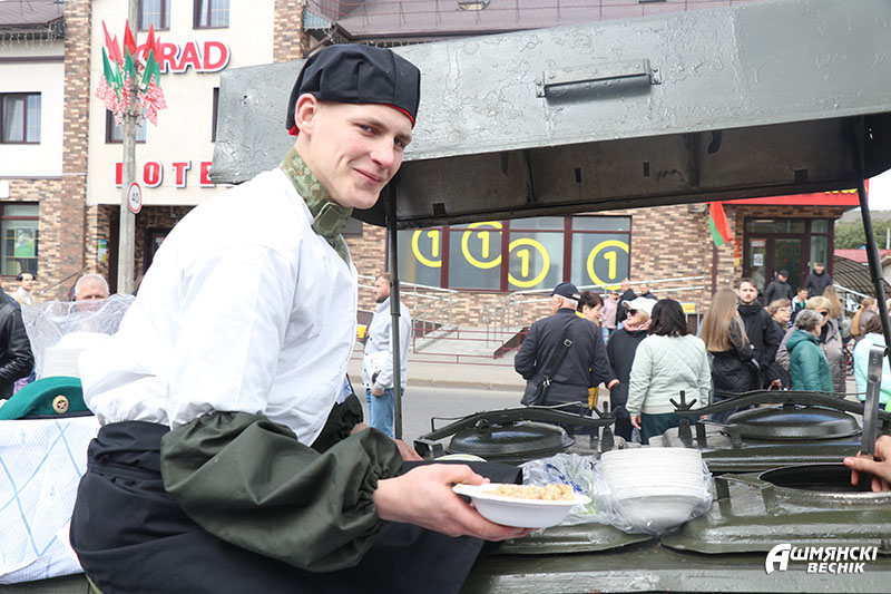 Особой популярностью у ошмянцев пользуется солдатская каша, которую предлагают на полевой кухне военнослужащие войсковой части 2044.