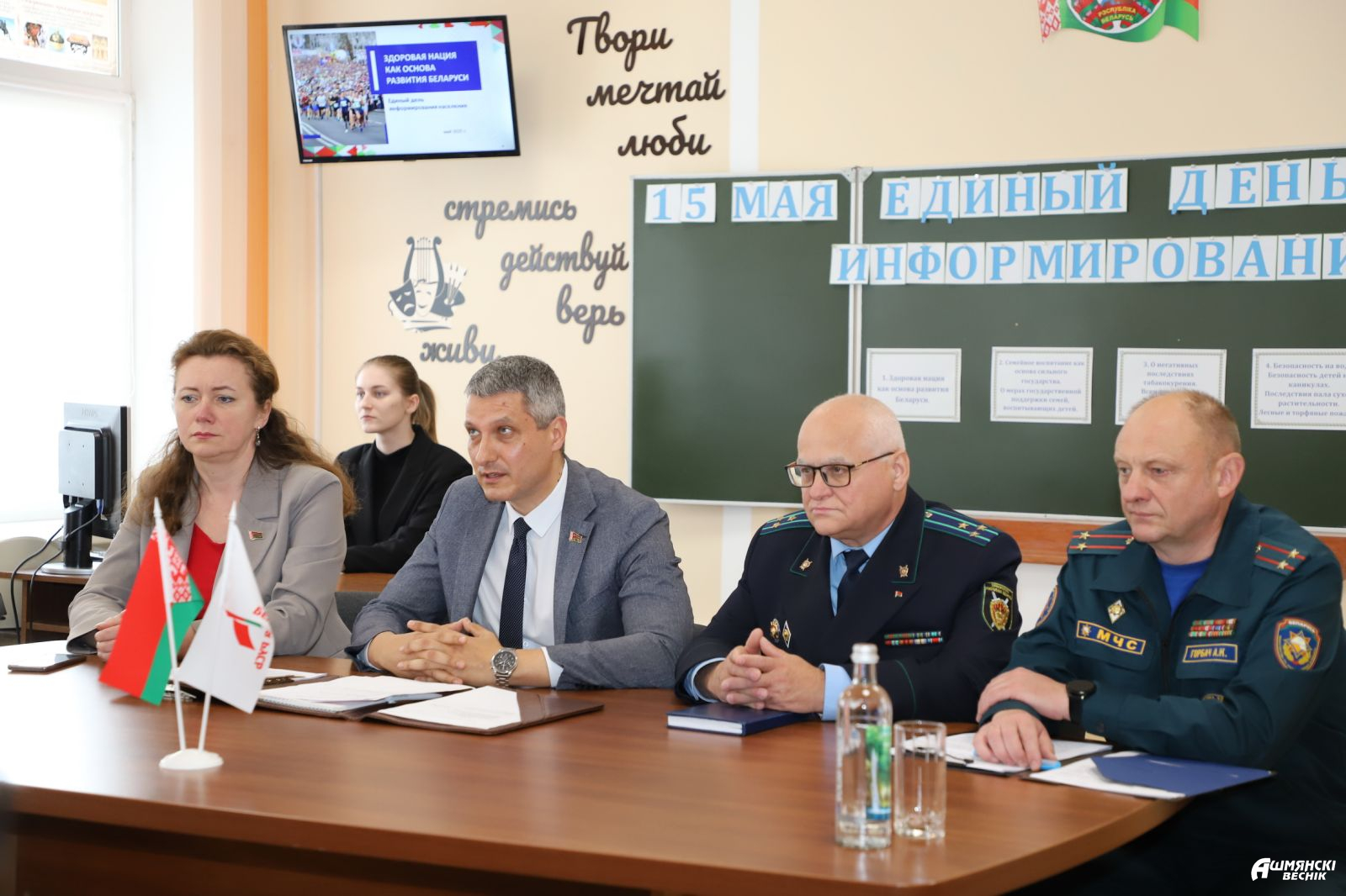 Члены районных информационно-пропагандистских групп на встречах в трудовых коллективах гимназии №1 г. Ошмяны, КСУП «Краковка», ОАО «Строитель», Ошмянского района газоснабжения, СШ №3, Беларусбанка, Новоселковской СШ и с населением Кольчунского сельсовета осветили темы «Здоровая нация как основа развития Беларуси», «Семейное воспитание как основа сильного государства». Еще две темы посвящены вопросам безопасности, которые также касаются в первую очередь семей, потому что самое большое внимание в Беларуси уделяется обеспечению безопасности детей.