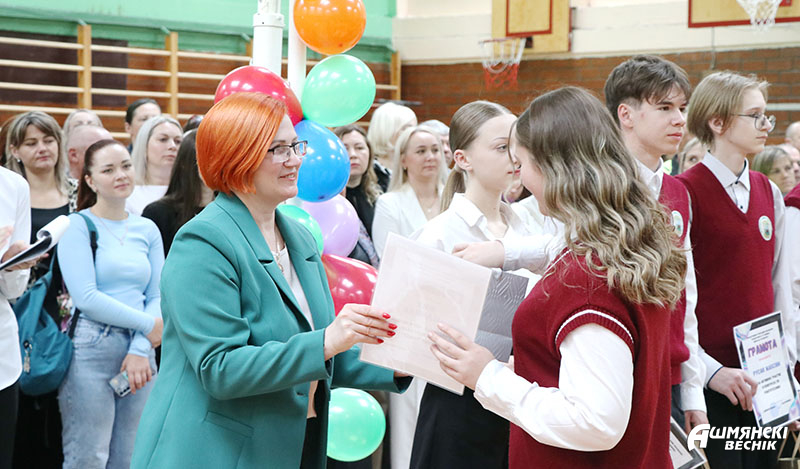Они пока еще одна семья – дружная и творческая семья первой школы. Они получают заслуженные награды – за успехи в учебе, победы в олимпиадном движении, достижения в творчестве и спорте. Директор обращает внимание на то, что значительные успехи, которых школа достигла за многие годы на районном, областном, республиканском уровнях – это и их заслуга, а также всех тех выпускников, которые с гордостью унесли с собой во взрослую жизнь мысль о том, что «няма на свеце лепшай, прыгажэй яе няма, бо здаўна завецца першай школа першая мая».