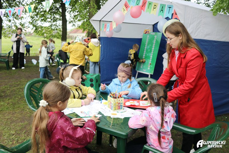 В этом году в гости к работникам районной библиотеки приехали коллеги из Островца и Сморгони. Они порадовали детей яркими развлечениями и играми, научили «распознавать» голоса природы и делать необычные поделки с использованием природных материалов.