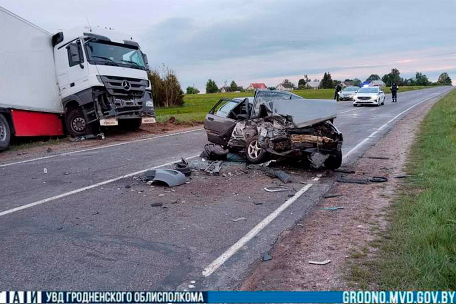 Водитель «Mercedes» в сцепке с полуприцепом ехал по трассе «Ивье-Трокели-Радунь» со стороны агрогородка Погородно в направлении городского поселка Радунь. При выезде с закругления дороги он съехал на правую по ходу движения обочину и потерял управление над авто. Из-за этого «Mercedes» оказался на встречной полосе, там произошло лобовое столкновение с «Audi» под управлением 34-летнего мужчины.