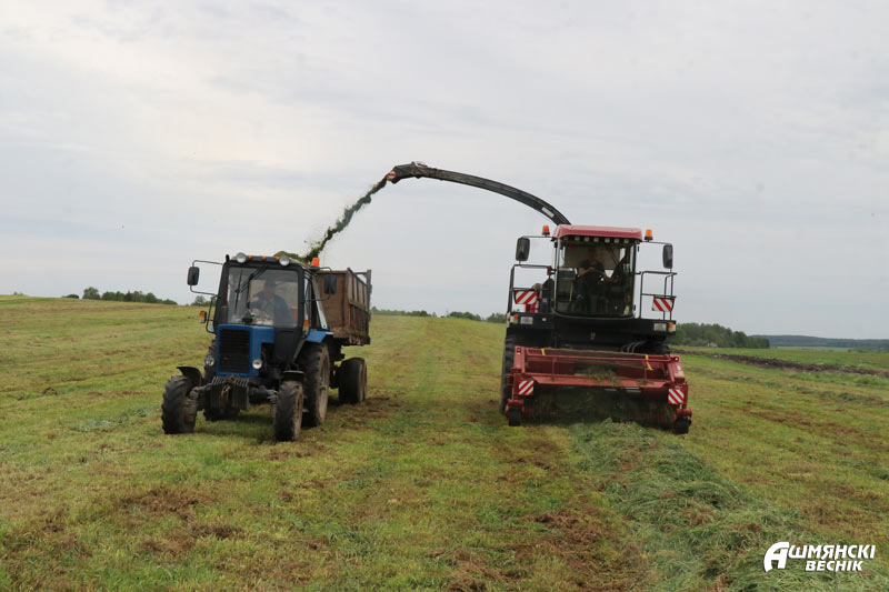 Плывет по полю комбайн КВК-800 «Палессе FS80», которым управляет Валерий Гордей. Из просторной кабины видна панорама убегающих вдаль полей. Только отвлекаться на красоту окрестной природы времени у комбайнера нет. Одной рукой он управляет машиной, а другой регулирует работу оборудования, внимательно следит за рабочей зоной и тем, как подбирающее устройство собирает валки подвяленной травы и отправляет уже измельченную массу в идущий рядом трактор. Информационная система бортового компьютера HARVEST OFFICE делает работу комбайнера максимально эффективной и комфортной. Она помогает управлять и наблюдать в реальном времени за состоянием основных функциональных узлов комбайна, контролировать рабочие органы, двигатель, а также предупреждает об аварийных ситуациях. Управлять такой техникой непросто. Июнь и июль предстоит комбайнеру трудиться на заготовке кормов, а потом приступить к уборке кукурузы.