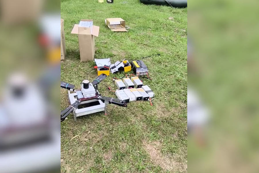 Как сообщили в ГПК, при осмотре построек изъяты беспилотник и пульт управления к нему, 8 аккумуляторных батарей, зарядная станция и GPS-трекер.