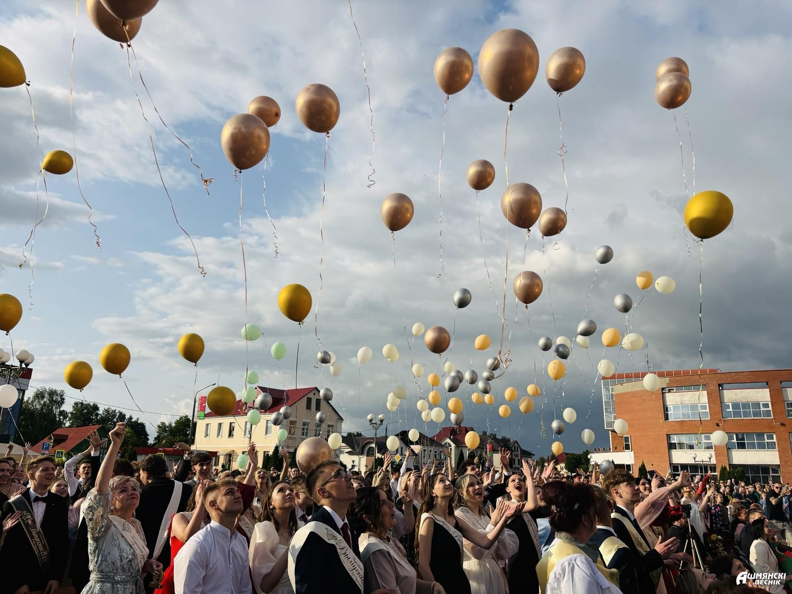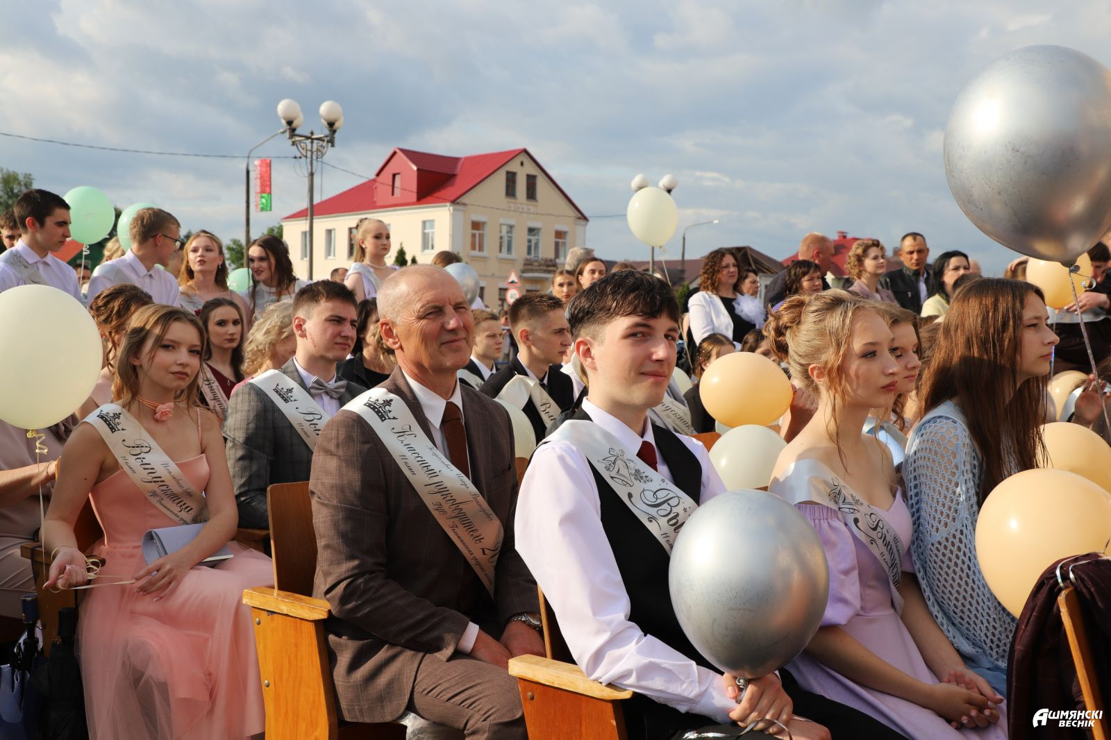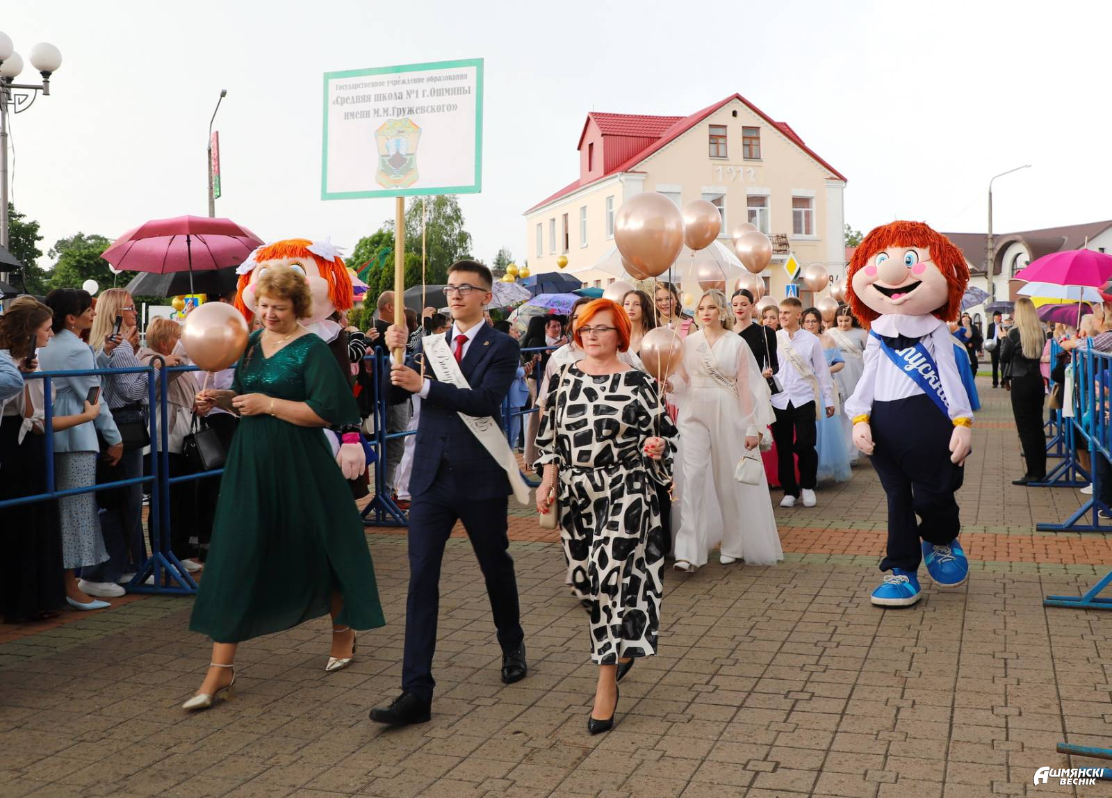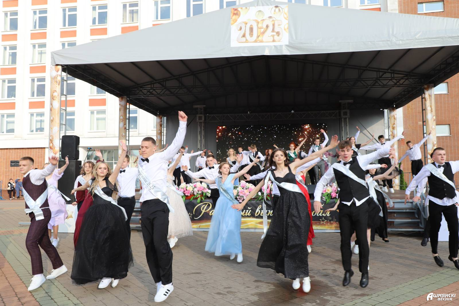 Выпускники раскрасили городскую площадь разноцветьем праздничных нарядов, ослепительными улыбками, юностью и энергией. Бурными овациями встречали ошмянцы каждый выпускной класс.