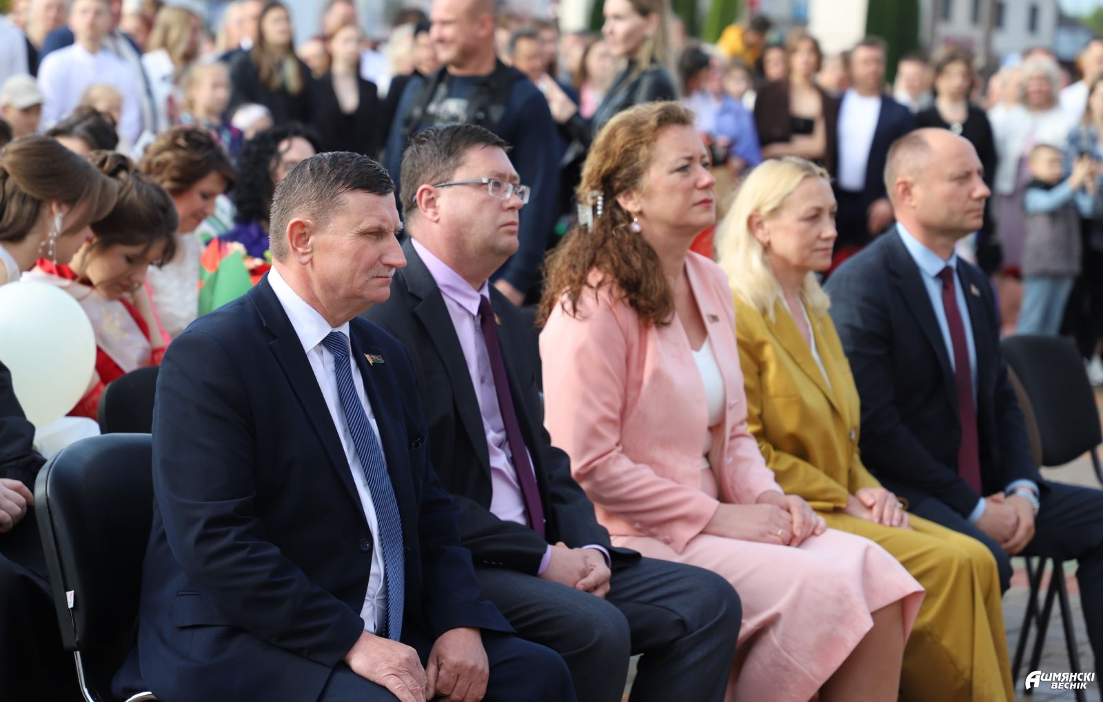 В празднике приняли участие и поздравили выпускников председатель Ошмянского райисполкома Владислав Гершгорин, председатель Ошмянского районного Совета депутатов Юрий Карпович, заместитель председателя Ошмянского райисполкома Анна Язель, начальник управления образования Светлана Барковская, представители духовенства и другие почетные гости.