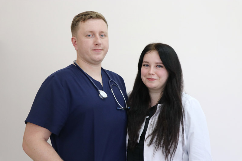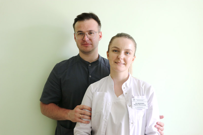 Уроженец Вороновского района Ярослав Валюкевич пришел работать в районную поликлинику Ошмянской ЦРБ неврологом в 2022 году. Наставником молодого специалиста стал опытный врач Бронислав Ясевич. У него Ярослав постигал азы практических навыков, всегда обращался за помощью и советом. В тот год в Ошмянскую больницу пришло много молодежи – было с кем пообщаться и провести свободное от работы время. Но мысли молодого человека были заняты любимой девушкой. С Кариной он был знаком давно. Вместе учились в Гродненском медуниверситете, но распределены были в разные районы. После заключения брака Карина, врач-офтальмолог, смогла перераспределиться и приехать по месту работы супруга, к тому же в Ошмянскую поликлинику требовался окулист.