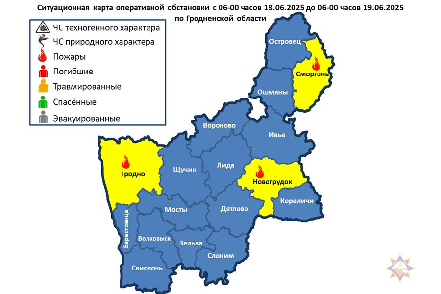 За сутки подразделениями МЧС области совершено 43 выезда, из них: 3 – пожара: Новогрудский район – пожар хозяйственной постройки, г. Гродно – пожар хозяйственной постройки (Ленинский район), Сморгонский район – пожар хозяйственной постройки. Люди не пострадали.