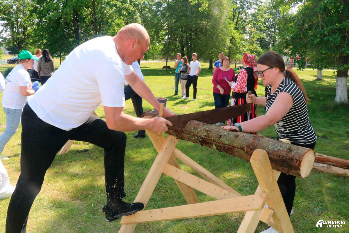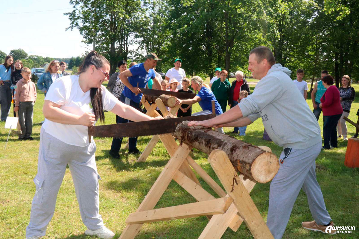 После конкурса визиток семей ждали серьезные испытания в силе и ловкости, умении распиливать бревна ручной пилой, колоть и складывать дрова,запрягать и распрягать лошадь. Вот где была возможность показать свои навыки жизни в деревне. Здесь семьи продемонстрировали взаимовыручку, показали свое умение работать в команде, проявили свои трудовые навыки и недюжинную силу. Полноценной участницей конкурса «Сивка-бурка» стала лошадь Алиса, которая терпеливо выдержала испытание.
