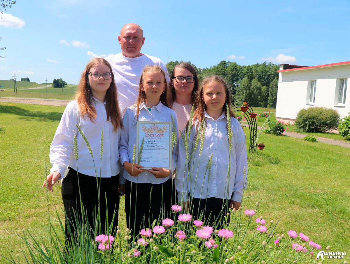 Первое место единогласно присуждено семье Дмитрия и Алёны Солдень из Гравжишек. В семье растут три дочери-школьницы: Ксения, Илона и Милана. Дмитрий работает в СУП «АгроМолРай» полеводом, Алёна – повар Гравжишковской базовой школы. Семье Солдень предстоит представлять Ошмянский район на областном этапе проекта «Властелин села — 2025», который состоится 26 июня.