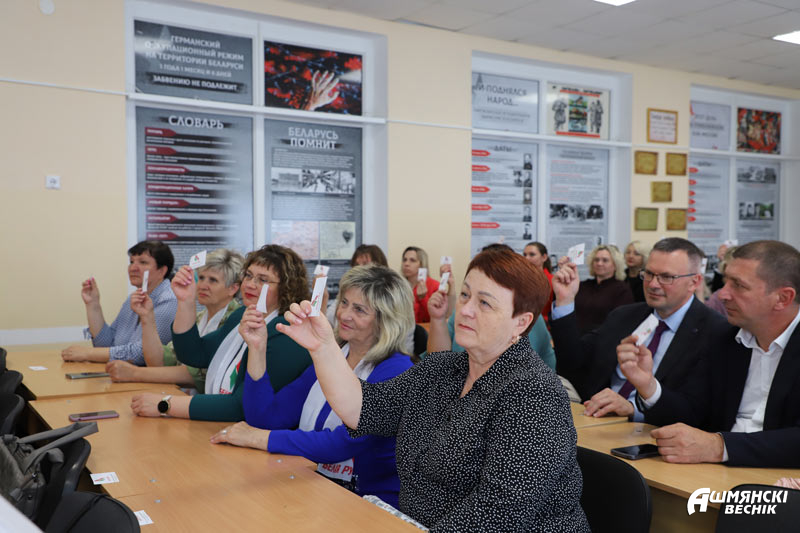 На конференции был также заслушан отчет контрольно-ревизионной комиссии, избраны делегаты на конференцию областной организации республиканского общественного объединения «Белая Русь». В качестве председателя Ошмянской районной организации РОО «Белая Русь» большинством голосов присутствующие поддержали заместителя председателя Ошмянского райисполкома Анну Язель.