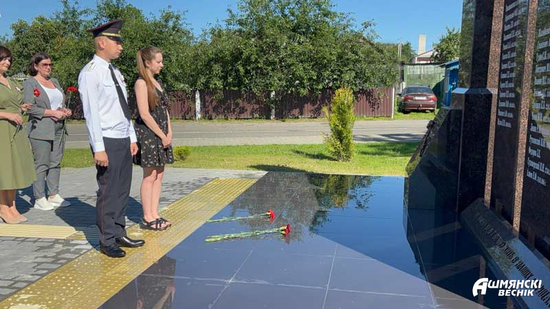 Пришедшие к монументам ошмянцы почтили минутой молчания память погибших.