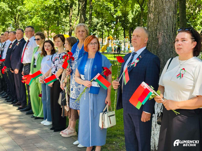Митинг-реквием прошел у братской могилы в городском парке. Участие в нем приняли представители органов местной власти, депутатский корпус района, представители общественных объединений, трудовых коллективов, духовенства, молодежь. Ведь так важно помнить тех, кто ценой собственной жизни выполнил долг по защите Родины, кто подарил нам возможность жить под мирным небом в независимой стране, работать и развивать свои способности, приумножать благополучие Беларуси.