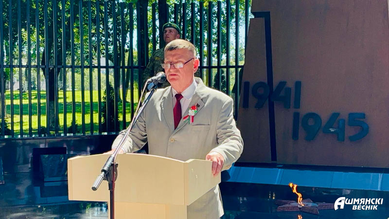 После торжественного исполнения Государственного гимна Республики Беларусь к присутствующим обратился председатель районного Совета депутатов Юрий Карпович, который напомнил о долге каждого – сохранять историческую память, беречь мир.