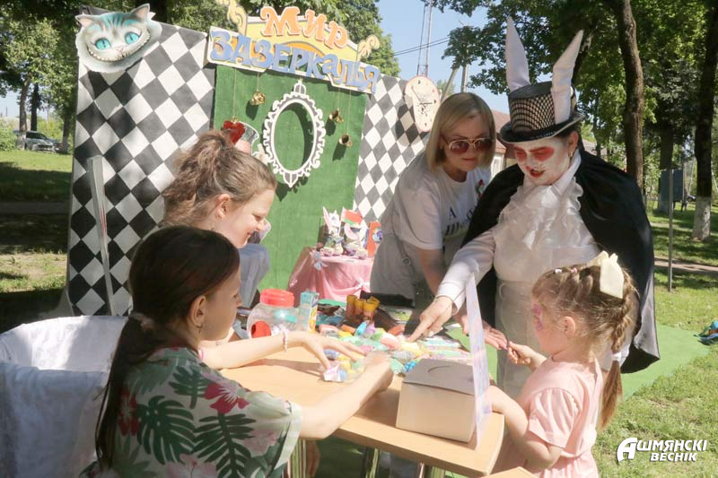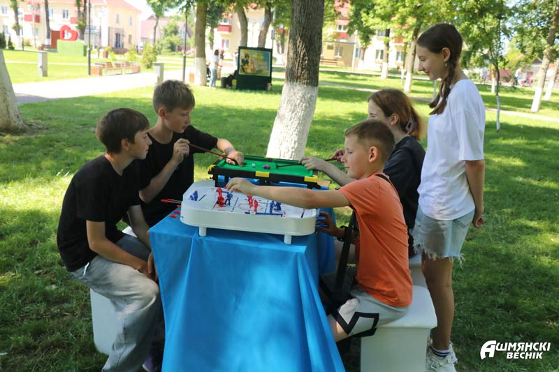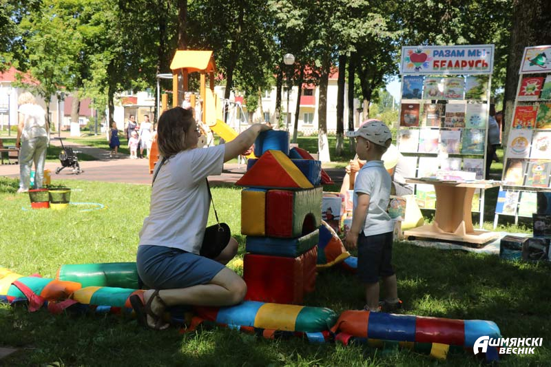 В городском парке работала детская интерактивная площадка «Великая и независимая Беларусь» для самых маленьких жителей города. Здесь развлечения для детей подготовили работники Ошмянской районной библиотеки и развлекательного центра «Джунгли». Работники библиотеки приглашали детей в «Мир зазеркалья». Здесь же в парке можно было поиграть в настольный футбол и теннис, посмотреть спектакль «Колобок на новый лад» образцового кукольного театра «Праменьчык» Ошмянского РЦК.