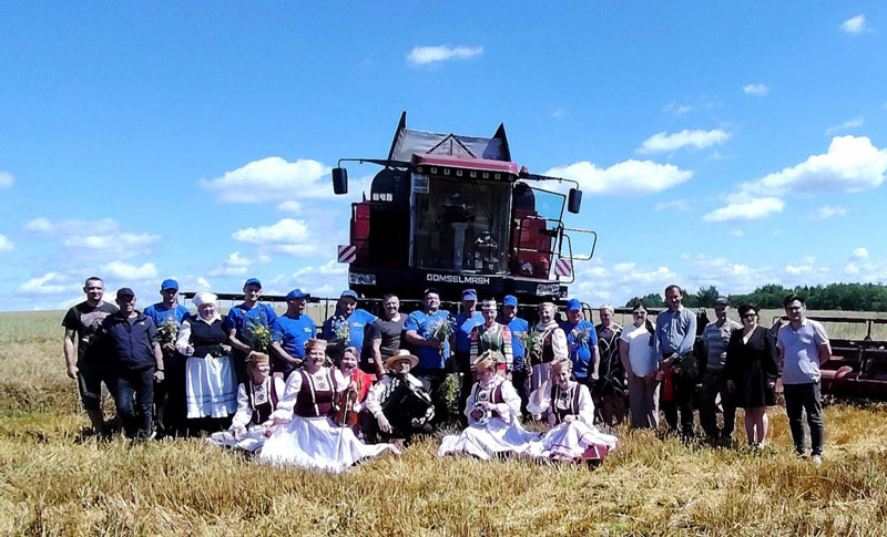 Першы сноп, як сімвал багатага ўраджаю, жнеі ўручылі Аляксандру Лукашэвічу. Багатых намалотаў і паспяховага жніва пажадала аграрыям намеснік дырэктара па ідэалагічнай рабоце Кацярына Розель.