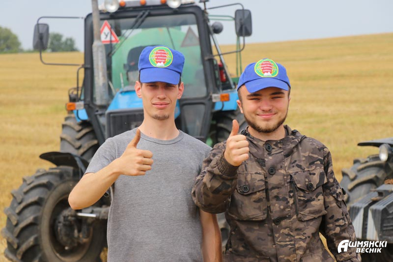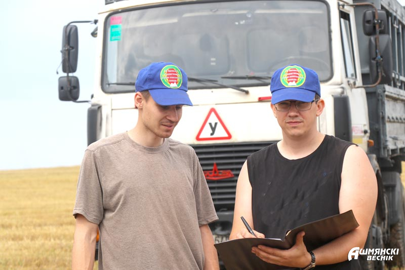 Транспортировкой нового урожая занимаются Дмитрий Томялович и Владимир Бураковский. И Дмитрий, и Владимир работают мастерами производственного обучения, а в сезон с энтузиазмом принимают участие в уборочной кампании. Для Дмитрия эта уборочная уже четырнадцатая, а для Владимира – вторая. Оба молодых водителя отмечают, что работа в поле, хоть и трудная, но приносит им огромное удовлетворение.