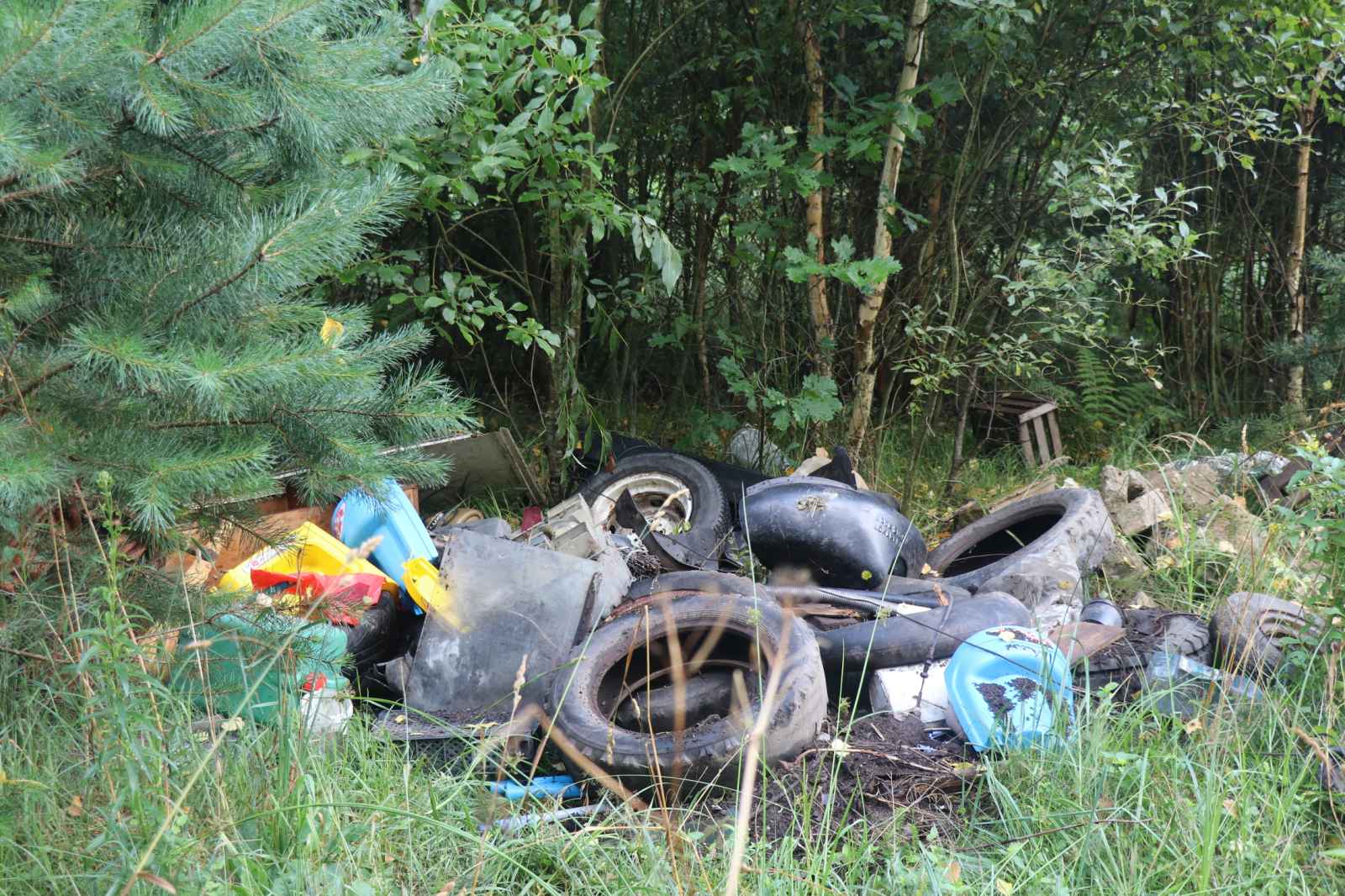 Надо сказать, что добраться до места свалки оказалось непросто. Шины, отслужившие детали автомобилей, предметы мебели, строительный мусор вывезен и свален на краю леса.