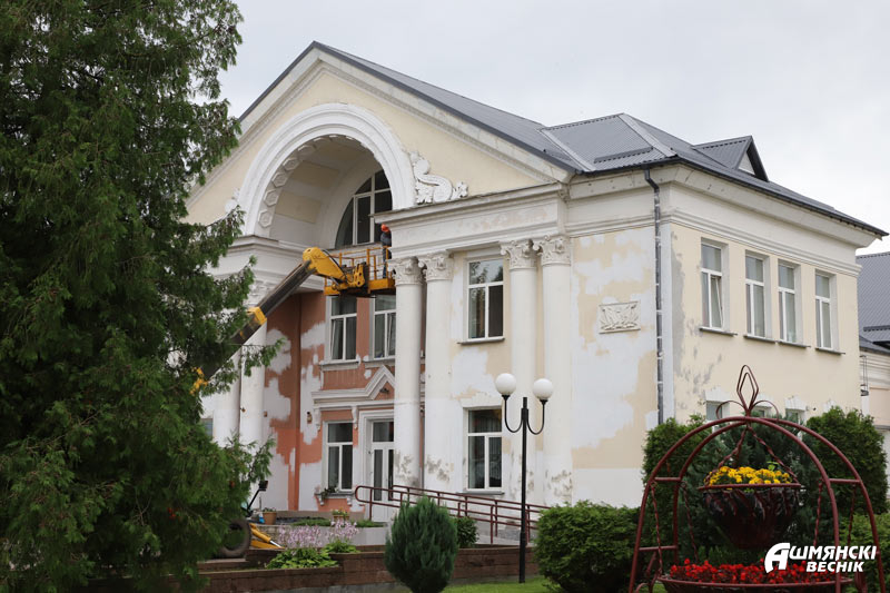 В настоящее время подрядчиком – работниками ООО «Гранит+» — ведется обновление фасада здания, общая площадь которого составляет порядка 1000 квадратных метров. Бригада штукатуров-маляров Александра Чимбора, Андрея Трибоцкого, Николая Кедо занята ремонтом штукатурки, окраской поверхностей, ремонтом отливов.