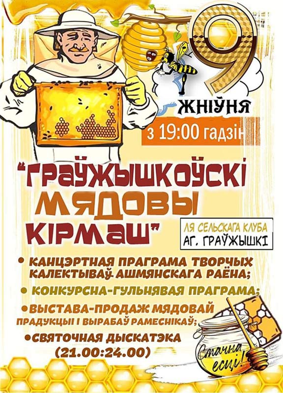 Самае салодкае і духмянае свята лета — «Граўжышкоўскі мядовы кірмаш» — традыцыйна праходзіць на Граўжышкоўскай зямлі, якая славіцца сваімі пчалярамі, а значыць і асабліва каштоўным і карысным мёдам. Сёлета свята адбудзецца 9 жніўня, пачатак у 19.00.