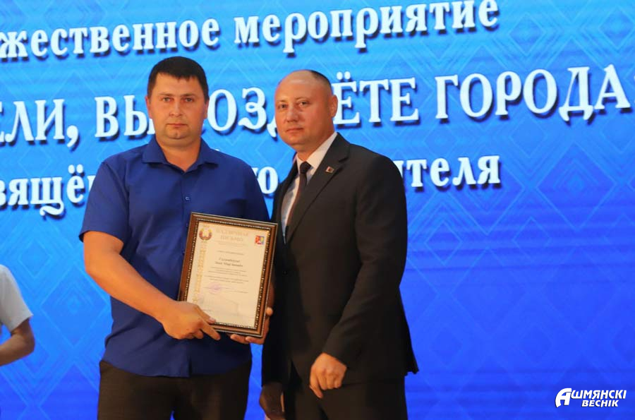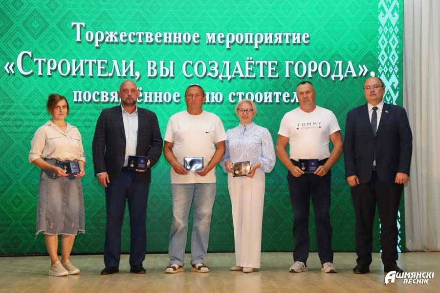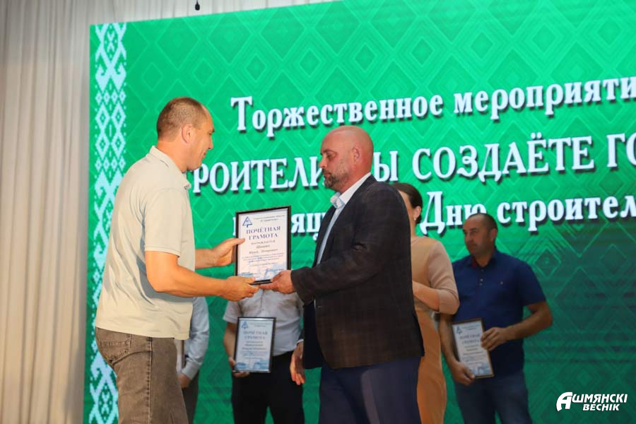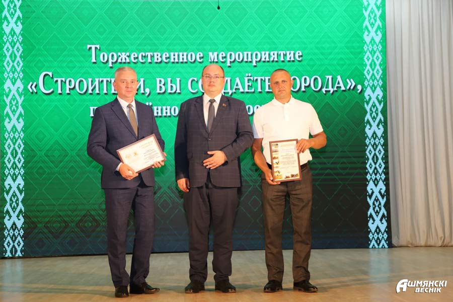 Почетной грамотой Гродненского облисполкома награжден плотник-бетонщик ОАО «Строитель» Александр Круликовский. Благодарность председателя Гродненского облисполкома объявлена каменщику организации Ивану Губареву. Почетная грамота Ошмянского райисполкома вручена начальнику участка деревообработки и изделий из поливинилхлорида ОАО «Строитель» Марияну Мицкевичу, машинисту экскаватора ООО «Гранит+» Иосифу Остику, прорабу ДСУ №28 Александру Федоровичу. Благодарственное письмо председателя Ошмянского райисполкома принимали работники ОАО «Строитель» — штукатур Данута Кеда, электромонтер по ремонту и обслуживанию электрооборудования Иван Голомбовский, водитель автомобиля Евгений Дервис, а также каменщик ООО «Гранит+» Павел Завадский и дорожный рабочий ДСУ №28 Виктор Лакутиевский.