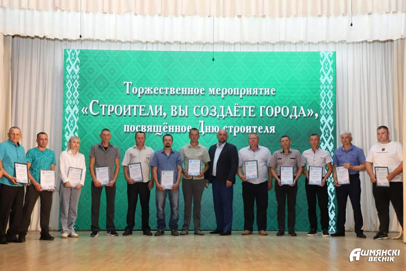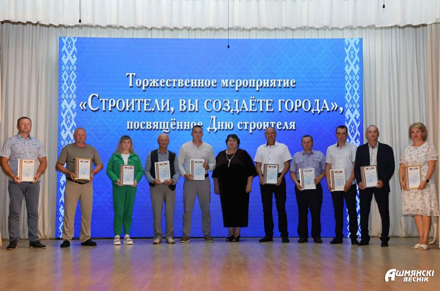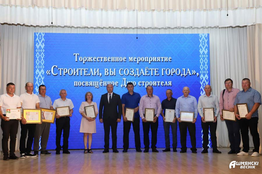 Торжественное мероприятие ко Дню строителя, который в этом году отмечается 10 августа, накануне прошло в Ошмянах. Поздравления по случаю профессионального праздника принимали работники самой массовой организации – ОАО «Строитель», а также ООО «Гранит+» и ДСУ-28. Чествование строителей состоялось в районном центре культуры.