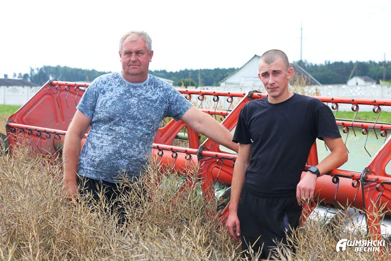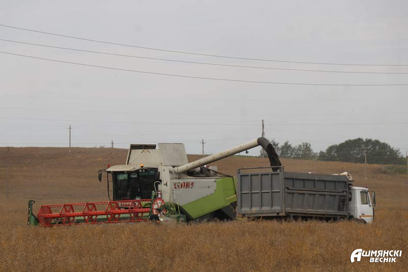 Наш корреспондент побывал на поле за деревней Чурки, где шла уборка рапса. Здесь работали пять зерноуборочных комбайнов, в том числе и комбайн Петра Познанского и его помощника Ивана Базыка. В этом году этот комбайнерский экипаж первым в Ошмянском районе намолотил тысячу тонн зерна. Механизаторы ненадолго покидают свои машины для фото, и комбайн снова уверенно идет вперед по рапсовому полю. Вскоре на нем загорается сигнальная лампочка, которая говорит о том, что бункер машины наполнен. Тут же к комбайну подъезжает большегрузный МАЗ, и в кузов густой струей льется «черное золото» полей.
