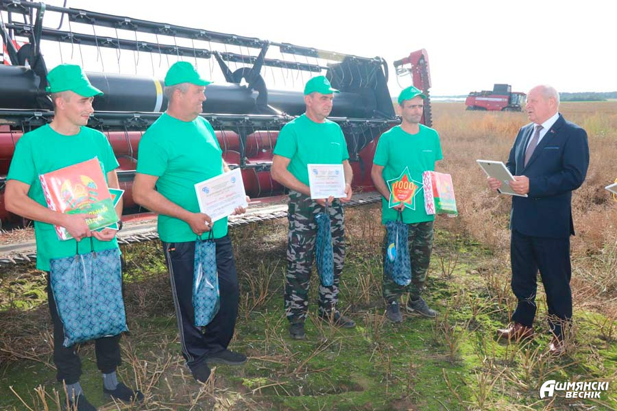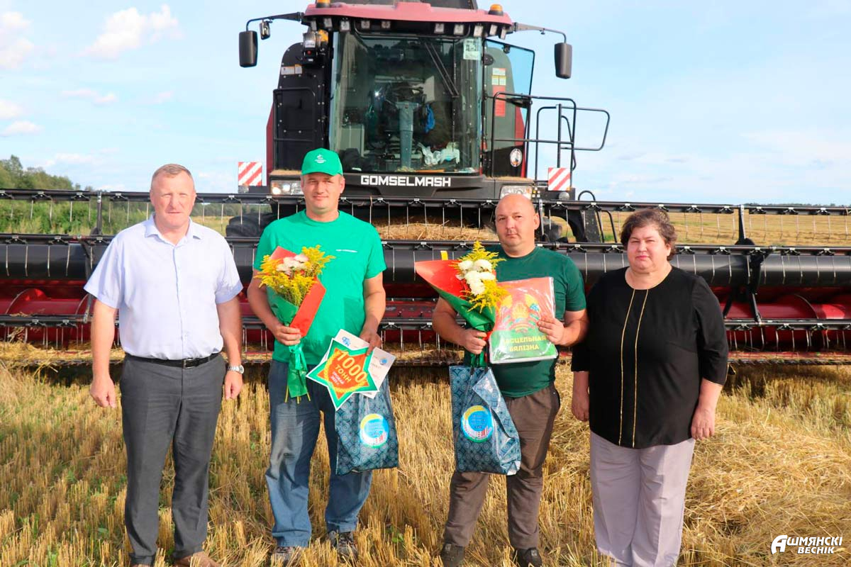 Первыми тысячный рубеж в намолотах перешагнули механизаторы КСУП «Гольшаны»: комбайнерские экипажи Петра Познанского и Ивана Базыка, Генриха Скаржинского и Андрея Давидовича, Александра Сосновского и Игоря Мисюкевича. Имена гольшанских аграриев на слуху не первый год.