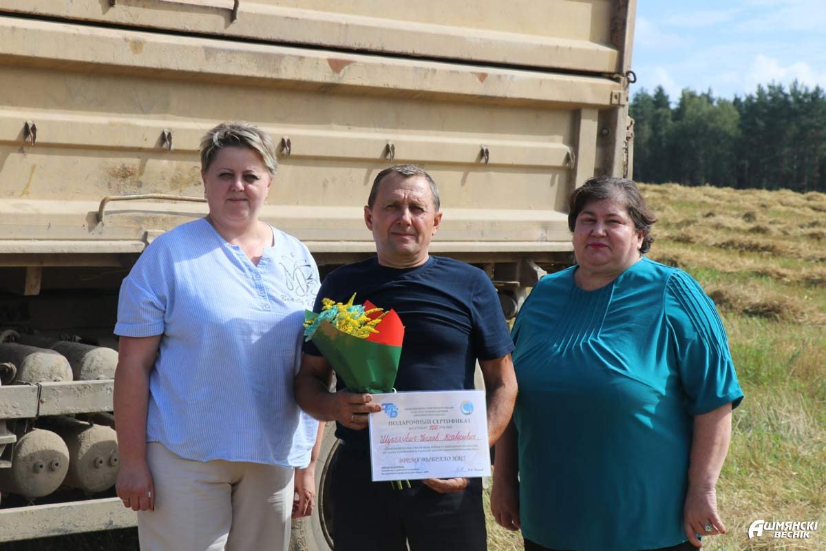 По сложившейся в районе традиции поздравить передовиков с высокими достижениями и поблагодарить за ответственное отношение к делу выехала председатель Ошмянского райкома профсоюза работников АПК Раиса Турлай. К ней присоединились директор КСУП «Гольшаны» Михаил Скаржинский, а также лидеры профсоюзных организаций КСУП «Гольшаны» и КРСУП «Э/б «Боруны» Кристина Пашковская и Мария Илюкович.