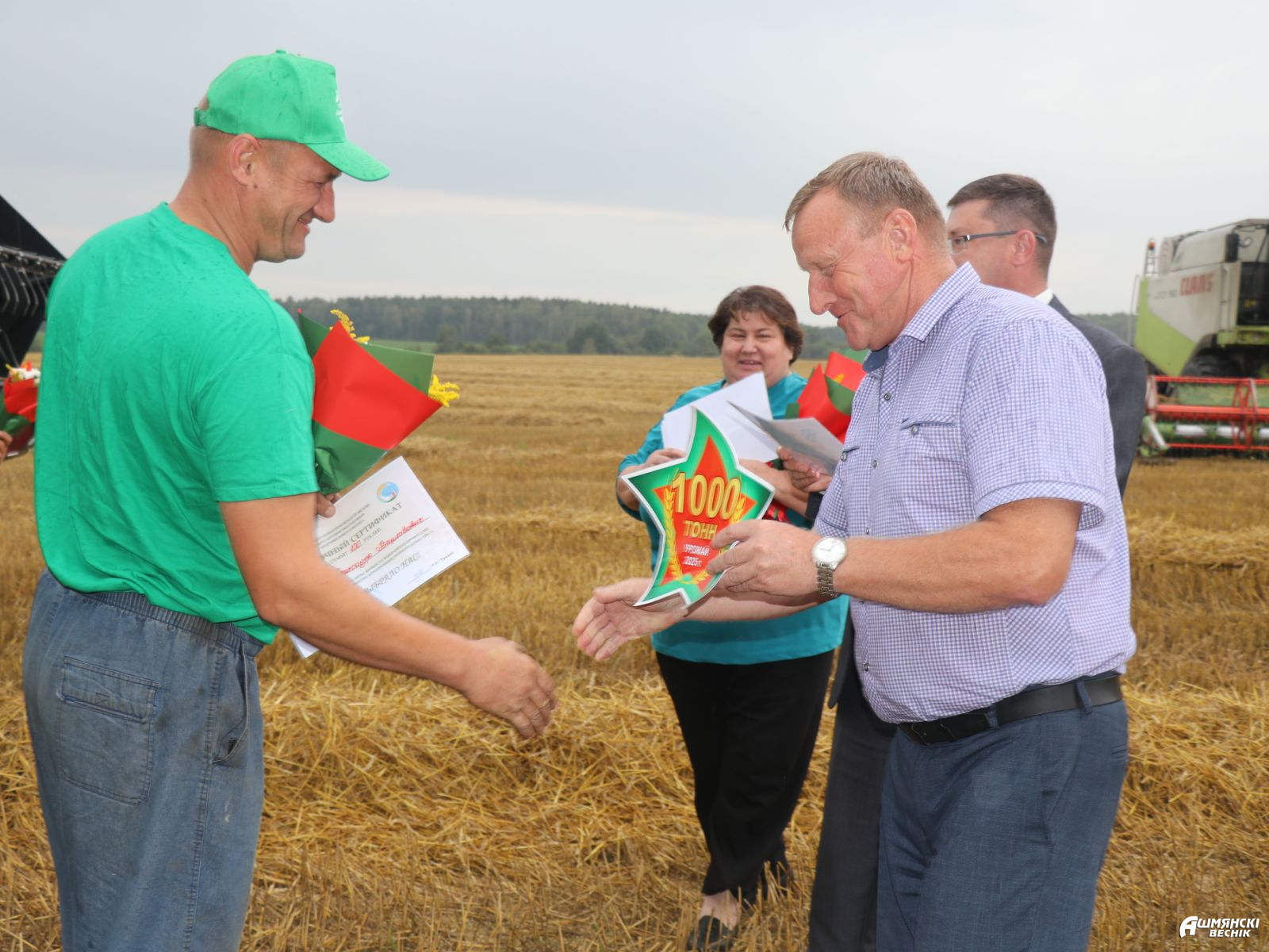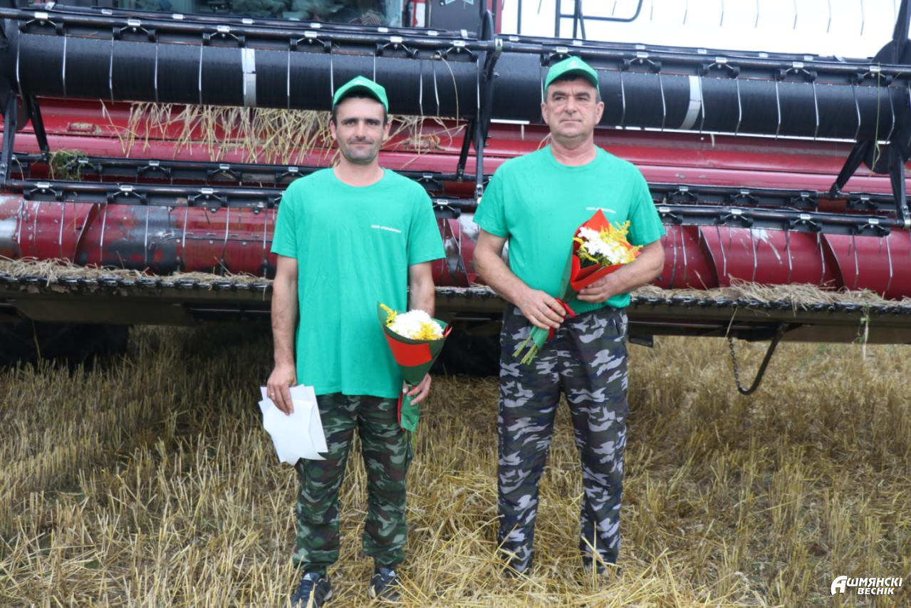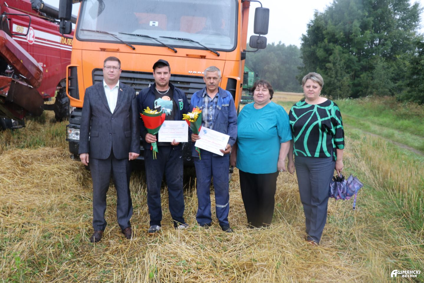 Лидеров жатвы приветствовал первый заместитель председателя Ошмянского райисполкома Андрей Янюк, председатель Ошмянского райкома профсоюза работников АПК Раиса Турлай, директор КСУП «Гольшаны» Михаил Скаржинский, лидеры первичных профсоюзных организаций хозяйств.