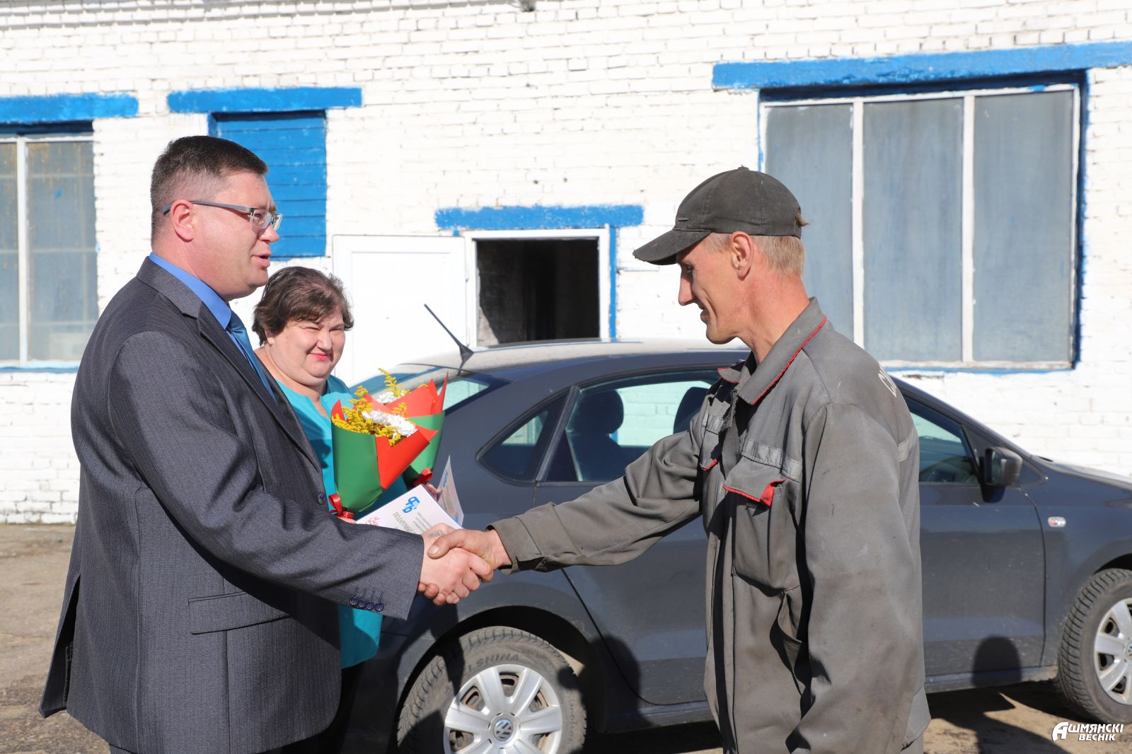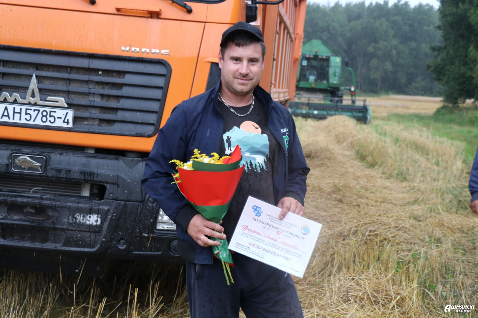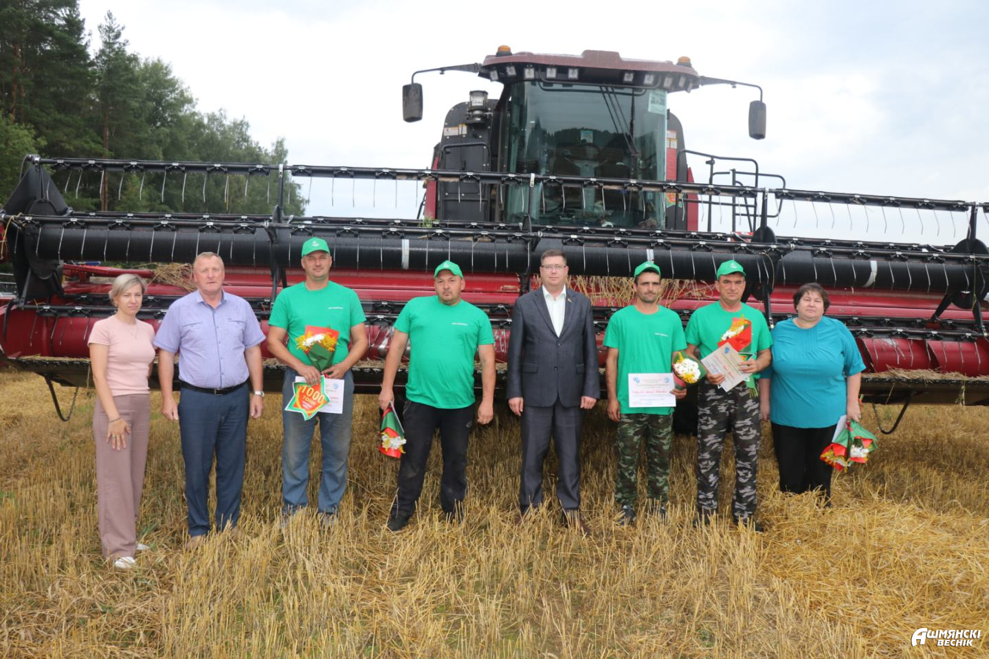 Лидеров жатвы приветствовал первый заместитель председателя Ошмянского райисполкома Андрей Янюк, председатель Ошмянского райкома профсоюза работников АПК Раиса Турлай, директор КСУП «Гольшаны» Михаил Скаржинский, лидеры первичных профсоюзных организаций хозяйств.