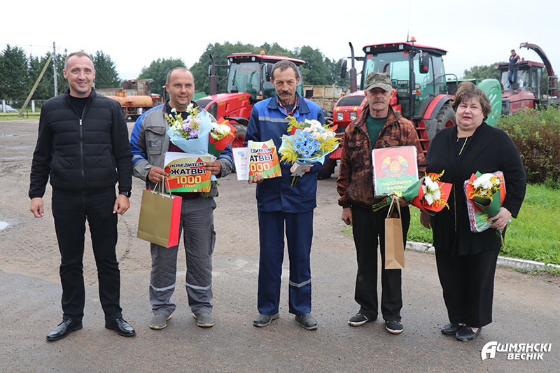 Планку в тысячу тонн взяли молодежный комбайнерский экипаж в составе братьев Анатолия и Вадима Островских из КСУП «Гольшаны», экипажи в составе Алексея Масевича и Иосифа Корицкого, Владимира Давлевича и Павла Гришеля из КСУП «Крейванцы», комбайнеры Владимир Езерский и Владимир Козловский из КРСУП «Э/б «Боруны», Руслан Опухович из КСУП «Приграничный», водитель Виталий Козловский из КРСУП «Э/б «Боруны».