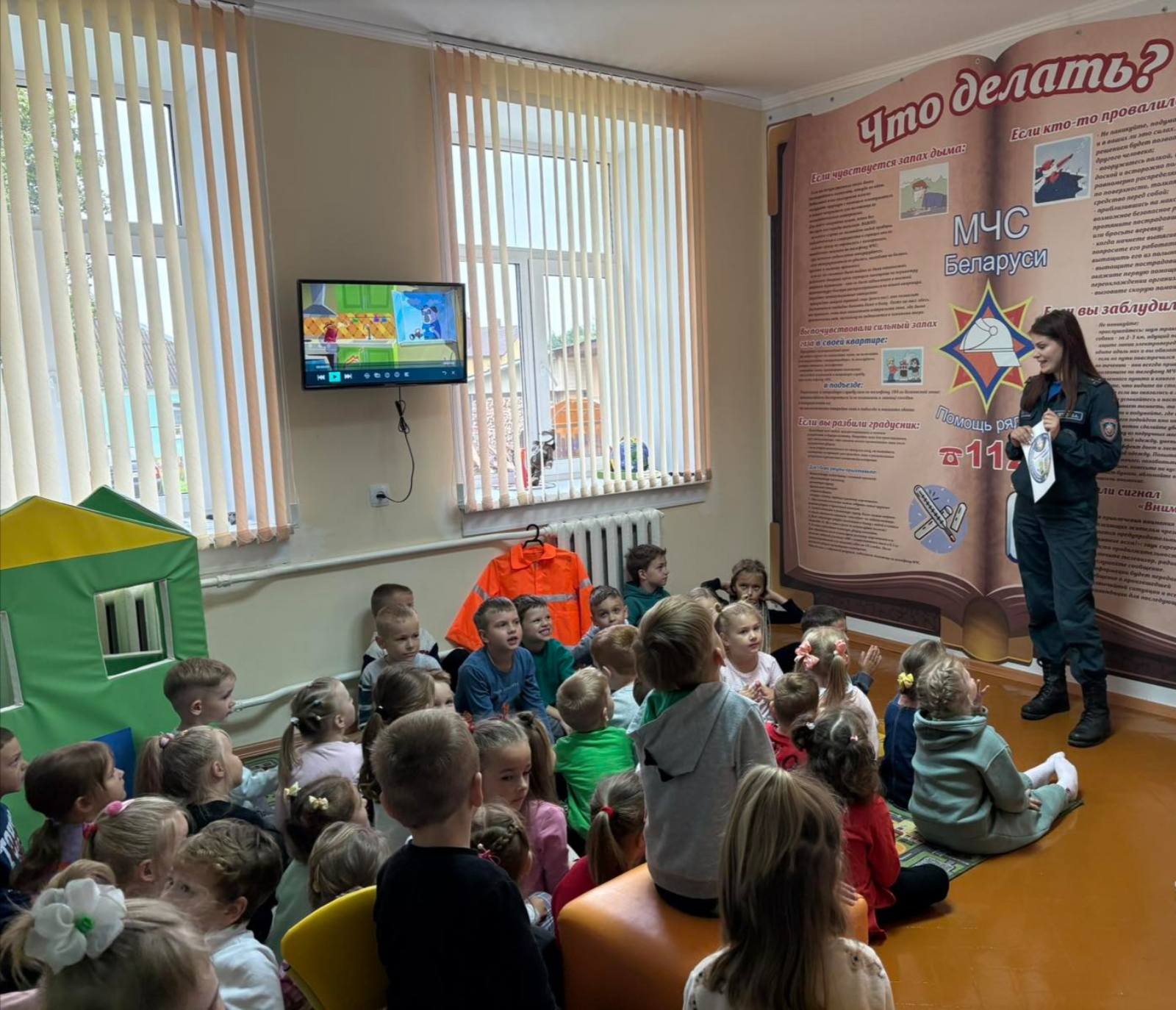 В один из дней воспитанники детского сада № 7 отправились туда на познавательную встречу. Комната безопасности встретила детей ярким, дружелюбным интерьером: на стенах — крупные схемы безопасного поведения, макеты дома, дорожные знаки и таблички с правилами. Здесь никто не кричал и не паниковал — каждый шаг сопровождался спокойной и понятной речью инспектора сектора пропаганды и взаимодействия с общественностью Ошмянского РОЧС Валерии Петрок. Инспектор сумела объяснить дошколятам, что безопасность начинается с простых действий: как вовремя позвать на помощь, как оценить ситуацию и как безопасно выбраться из помещения.