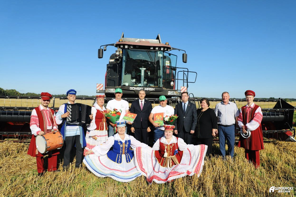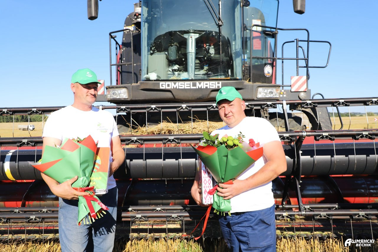 Комбайнерский экипаж Александра Сосновского и Игоря Мисевича из КСУП «Гольшаны» в очередной раз за нынешнюю уборочную кампанию принимал поздравления. Хлеборобы впервые за историю жатвы на Ошмянщине намолотили 3 тысячи тонн зерна. С достижением рекорда аграриев поздравил председатель Ошмянского райисполкома Владислав Гершгорин.