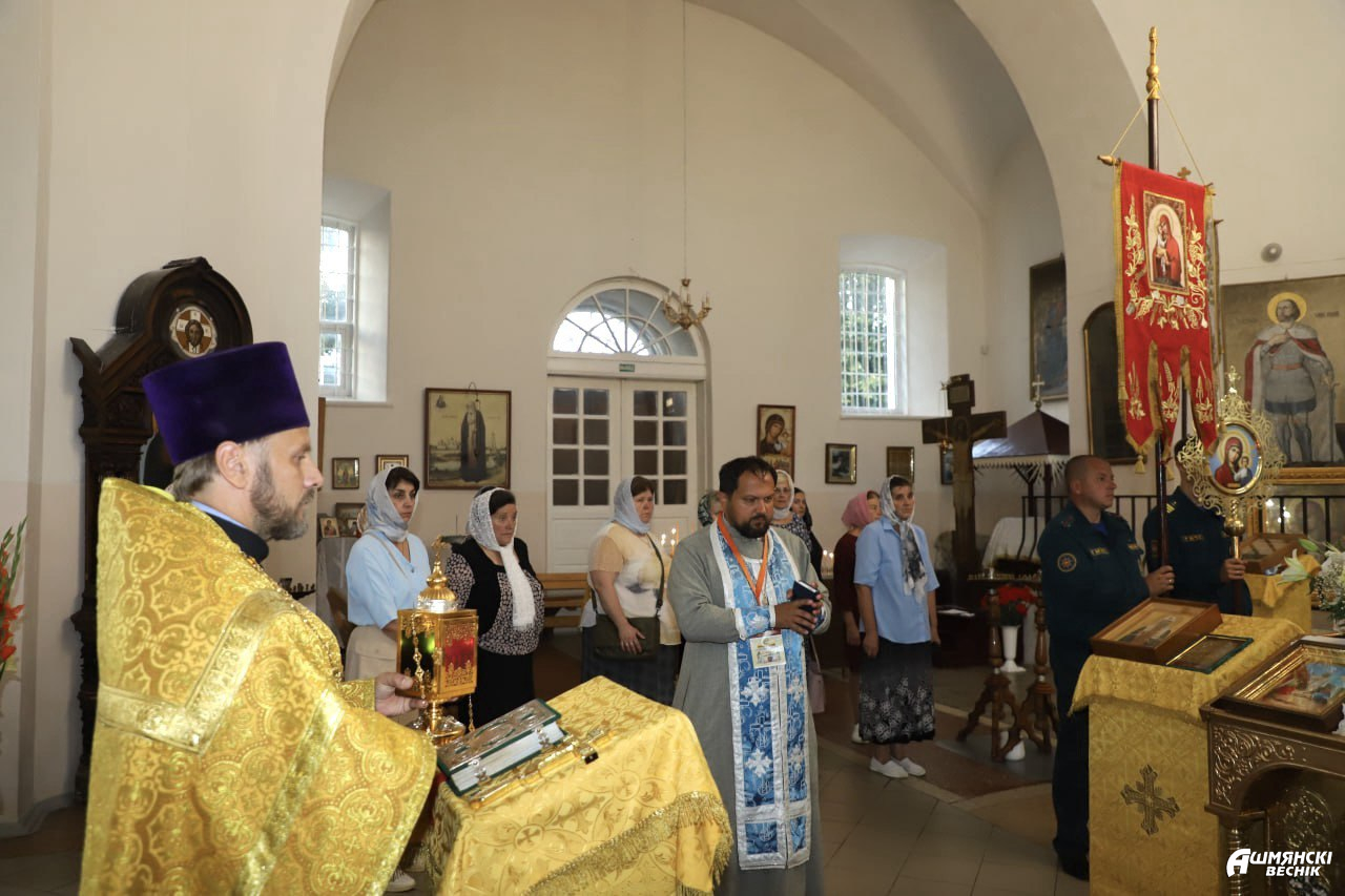 Прибыв в Ошмяны, участники экспедиции отправились в храм Воскресения Христова, где прошел молебен. Прихожане имели возможность взять частицу Благодатного Огня. Затем