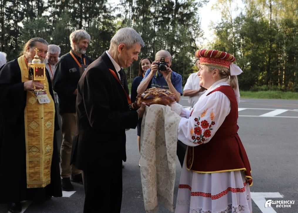 На ошмянской земле участников экспедиции приветствовали председатель районного Совета депутатов Юрий Карпович и заместитель председателя райисполкома Анна Язель, которые пожелали всем духовного и культурного обогащения. В знак гостеприимства гостям преподнесли в дар ошмянский каравай.