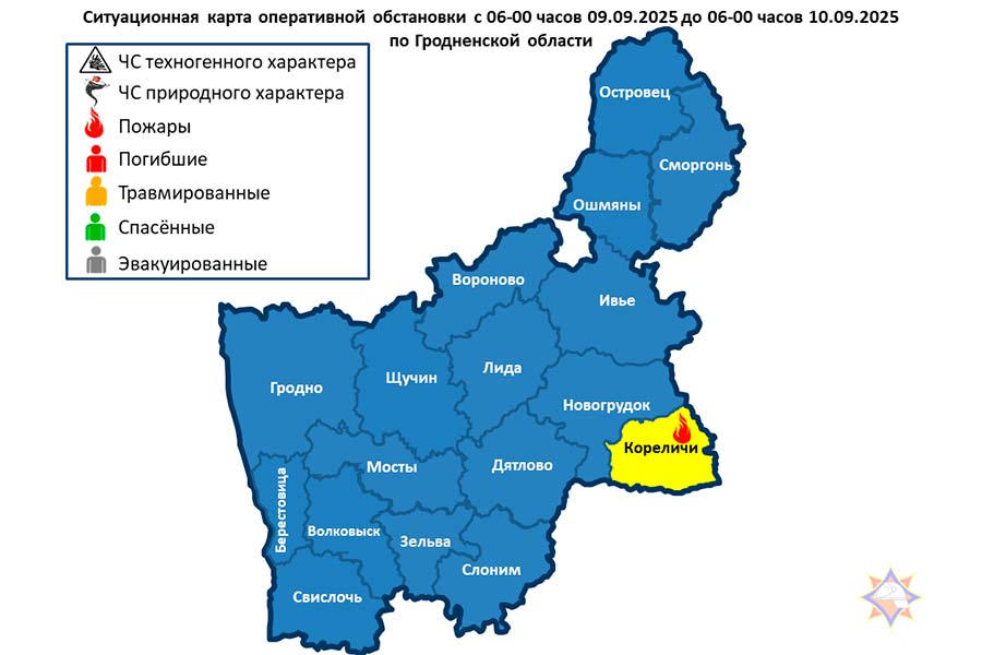 За сутки подразделениями МЧС области совершен 31 выезд, из них: 1 – на пожар: Кореличский район – пожар жилого дома. Люди не пострадали.