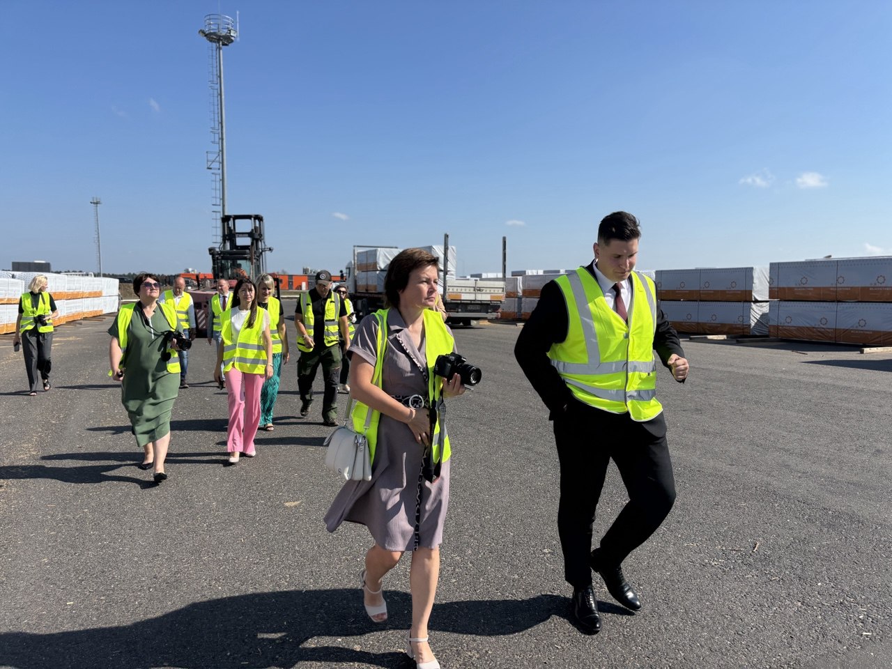 Участники пресс-тура ознакомились также с инвестиционным проектом ООО «Белакон Тимбер». Предприятие по деревообработке работает по принципу безотходного производства и выпускает круглые лесоматериалы хвойных пород малого и среднего диаметра, а также пиломатериалы — строганую и профилированную доски.