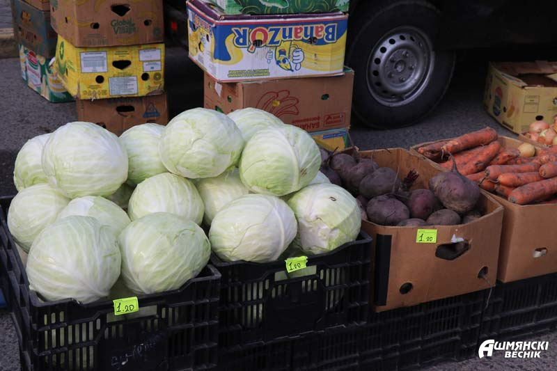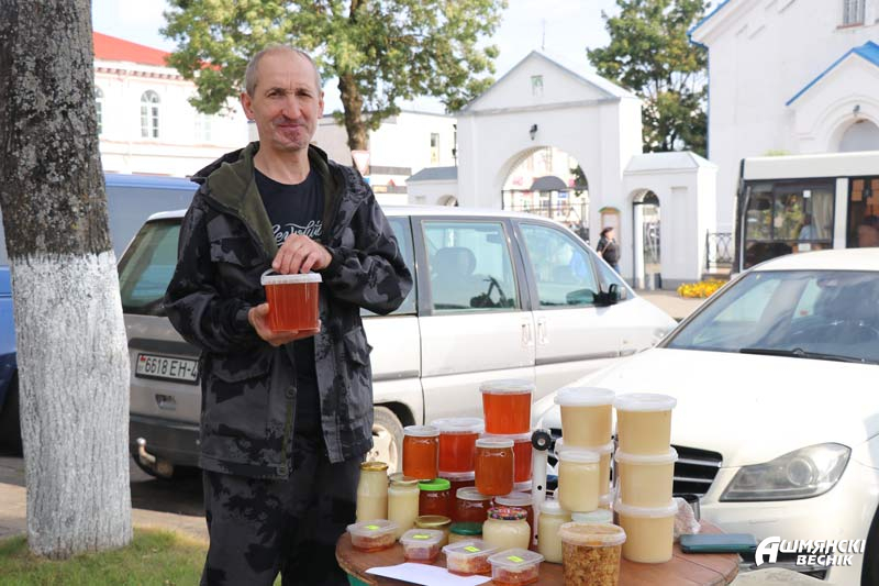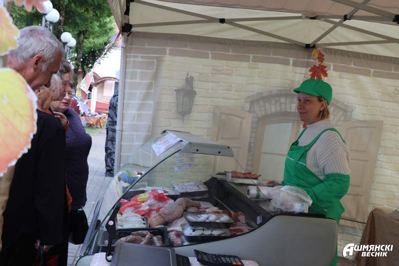 На улице Первомайской была предложена сельскохозяйственная продукция: картофель, капуста, томаты, огурцы, перцы, свекла, морковь, лук, чеснок, яблоки различных сортов. Как говорится все, что нужно простому человеку. Особенно выделялись сорта картофеля, такие как «Королева Анна», «Гала», «Скарб», которыми интересовались многие ошмянцы, не забывая уточнить о качестве приобретаемого ими товара. Цены на картофель начинались от 80 копеек за килограмм. Продавали и зерновые культуры: ячмень, пшеницу и тритикале, цены на которые начинались от 35 копеек за килограмм. Расположились и палатки с мясной продукцией – свининой и говядиной – от местных сельхозпредприятий.