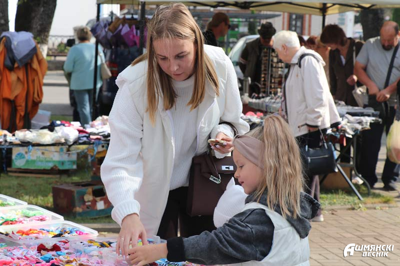 На ярмарке можно было приобрести не только продукты питания, но и сувениры, глиняные изделия, детские игрушки, ремесленные изделия и товары народного промысла. Приближается католический День всех Святых, поэтому спрос был и на искусственные цветы. Изделия из дерева, оригинальные шкатулки, традиционные деревянные ложки всех размеров и форм, бижутерия, именные кружки, ручки и ложки, восковые свечи – это лишь часть того, на что обращали внимание ошмянцы. А юные ошмянки останавливались у украшений для волос – банты, резинки, заколки – все вызывало интерес и желание примерить подобную красоту.