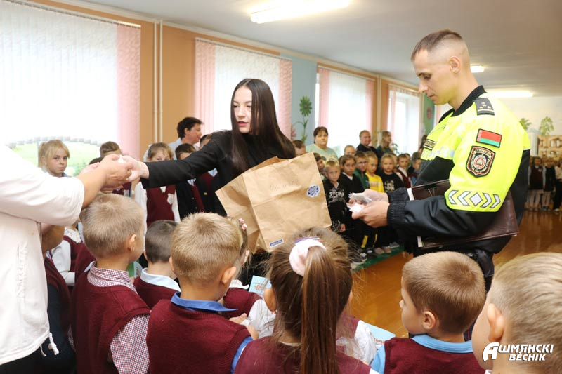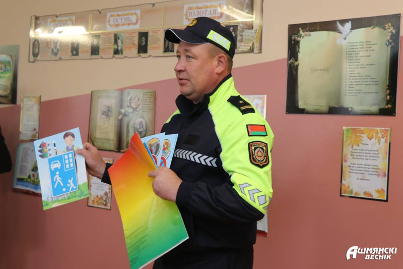 Очередная встреча сотрудников ГАИ с детьми состоялась в Гольшанской СШ. В гости к ребятам пришли старший госавтоинспектор отделения Александр Каморник и инспектор ДПС Денис Михневич, а также юрисконсульт Представительства Белгосстраха по Ошмянскому району Полина Розон.